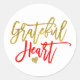 Sticker Rond Grateful Heart Thanksgiving Red Gold script Blanc
