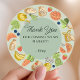 Add a fun, farm fresh touch to your party favors with this farmers market thank you sticker featuring colorful hand drawn fruits, vegetables, and baked goods circling a soft green center. Perfect for birthday parties, baby showers, or garden themed celebrations, this design brings a charming, organic and locally grown feel to your event packaging, party favors, or envelopes.