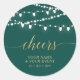 Cet autocollant chic personnalisé ajoutera des détails élégants à votre journée spéciale. Ce design présente des lettres dorées " Cheers " et des lampes à cordes sur un arrière - plan vert émeraude. Les invitations et les fournitures de la partie correspondant sont disponibles dans ma boutique BaraBomDesign.