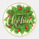 Sticker Rond Green Holly & Red Berries Wreath Joyeux Noël