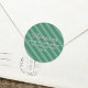 Add a festive finishing touch to your holiday mail with this green striped return address label. Designed with classic calligraphy script and a minimalist layout, it’s the perfect holiday sticker for sealing envelopes or gifts. Personalized with your family name, this simple and timeless envelope seal brings a refined seasonal touch to every card and package.
