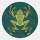 Cette grenouille tribale est décorée de tourbillons dorés complexes et de motifs à points. L'intérieur de la grenouille est peint d'une couleur bleu profond qui se retrouve dans l'arrière - plan donnant au motif un beau contraste. Une ombre tombe juste sous la grenouille symétrique de l'arbre, ce qui lui donne l'air de flotter juste au-dessus de la surface de cet autocollant. Ce design stylisé est une représentation saisissante de cette merveilleuse petite créature.