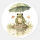 Sticker Rond Grenouille mignonne avec un parapluie au lac