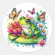 Sticker Rond Grenouille mignonne sur Lily Pad avec Fleurs et Pa