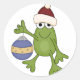 T-shirts de Noël, tasses, magnets, cartes, autocollants, sacs fourre-tout, et plus encore avec une mignonne grenouille verte dans un chapeau de Père Noël tenant un ornement de vacances. Vous pouvez ajouter du texte ou un nom à ce joli design de vacances facilement avant de commander!