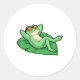 Sticker Rond Grenouille sur la feuille avec lunettes de soleil