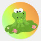 Sticker Rond Grenouille verte amusante sur un tapis de Lily
