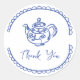 Cette autocollante de remerciement pour la douche de mariée est basée sur la tendance populaire du dessin à la main qui présente des aliments et des boissons de style français ou italien dans un style fantaisiste, gribouillé et griffonné. Ce design est idéal pour un brunch de mariage. Il présente une théière dessinée à la main dans un style gribouillé et lâche et un cadre circulaire à festons.