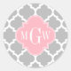 Sticker Rond Gris Blanc Marocain #5 Rose 3 Monogramme initial