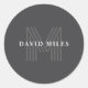 Sticker Rond Gris foncé Rétro Moderne Monogramme Nom