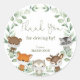 Un autocollant rond décorable sur le thème des bois, avec des animaux de la forêt douce, un masque et une élégante couronne botanique.