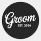 Sticker Rond Groom Est 2026 Matching Getting Ready Wedding