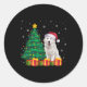 Sticker Rond Gros Pyrénées Santa Hat Noël Lumières Chien