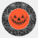 L'autocollant d'Halloween est présenté avec une toile d'araignée festive et une empreinte citrouille. Grande taille Customiser cet article ou acheter tel quel. Image sous licence