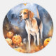 Sticker Rond Halloween Anglais Foxhound Avec Citrouille