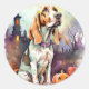 Sticker Rond Halloween Basset Hound Avec Crainte Citrouille