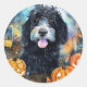 Sticker Rond Halloween Bernedoodle Avec La Peur Citrouille