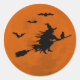 Sticker Rond Halloween Black Wicked Witch Flying Orange Moon