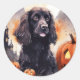 Sticker Rond Halloween Cocker Spaniel Avec Citrouilles