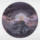 Sorcière bordée avec pleine lune, chauve-souris et arbres morts.
