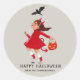 Jolie fille diable d'Halloween gris avec robe rouge allant pour le tour et traiter avec ami chauve-souris et citrouille.