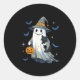 Sticker Rond Halloween Ghost Witch Holding Black Cat Funny Hall