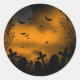 Sticker Rond Halloween Graveyard avec chauves-souris et pierres