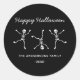Sticker Rond Halloween noir et blanc dessin main squelette heur