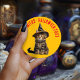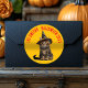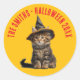 Sticker Rond Halloween Rustique Rouge Et Orange Kitten Witch