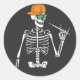 Sticker Rond Halloween Skeleton Rock Main Jouer des tambours
