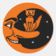 Sticker Rond Halloween vintage - Chat dans la lune