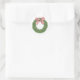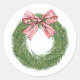 Sticker Rond Hand Painted Winter Pine Wreath Striped Red Bow