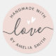 Sticker Rond Handmade with love hearts name light blush pink