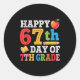 Sticker Rond Happy 67th Day Of 7th Grade Teacher Student 67 Day
