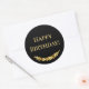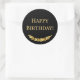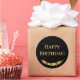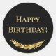 A classic black colored background. Text: Happy Birthday! Decorated with faux gold leaves.