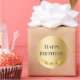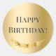 A faux gold looking background. Black text: Happy Birthday! Decorated with faux gold leaves.