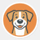 A clean, flat-style vector illustration of a happy dog's face centered within an orange circle.