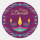 Sticker Rond Happy Diwali violet bougie plat illustration