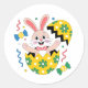 Sticker Rond Happy Easter Party Bunny Popping Out