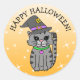 Sticker Rond Happy Halloween Chat dans le Casquette de Witch