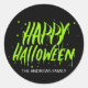 Ce design présente "Happy Halloween" dans la célèbre typographie moderne de peinture à goutte verte sur un arrière - plan noir. #halloween #fête #autocollants