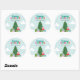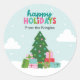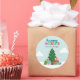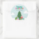 Sticker Rond Happy Holidays Tree with Gifts in Aqua Blue