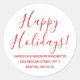 Happy Holidays rouge et blanc moderne script personnalisé calligraphie nom et adresse personnalisée de retour de vacances autocollants d'adresse. Texte rouge entièrement personnalisable, arrière - plan blanc. Design élégant, simple et moderne.
