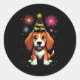 Sticker Rond Happy New Year 2025 Eve Firework Dog Funny Beagle