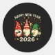 Sticker Rond Happy New Year 2026 Gnomes Fireworks Party