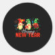 Sticker Rond Happy New Year Three Gnomes Fireworks Confetti Nye