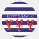 Sticker Rond Happy Summer bleu rayures rouges homards