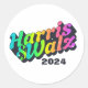 Page Sticker arrondi Harris & Walz. Ce joyeux design arc-en-ciel est exactement ce dont nous avons besoin. Votez BLUE et récupérez vos droits. Nous avancerons avec ce billet ! RETOUR : VOTE BLUE 2024 est modifiable.