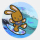 Sticker Rond Hawaiian Surfing Bunny Cartoon de vacances
