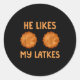 Sticker Rond He Likes My Latkes Hanukkah Couple Matching Jewish
